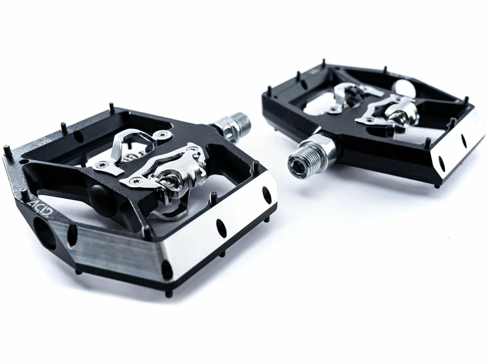 Hier im Bikepark kenne ich jeden Anlieger, jeden Sprung und jede Wurzel. Adrenalin pur! Auf meine Acid Click A2-ZP Pedale kann ich mich dabei voll verlassen. Mit ihren einstellbaren Pins auf der einen Seite und dem Klick-Mechanismus auf der anderen, fühle ich mich auch im gröbsten Wurzelteppich sicher mit dem Bike verbunden und kann mich doch sofort davon lösen, wenn der Trick mal nicht so klappt wie geplant.