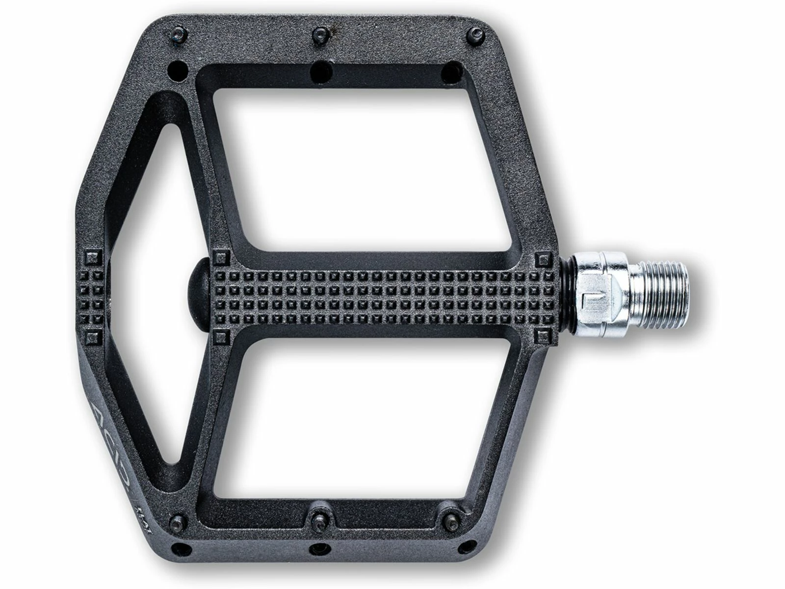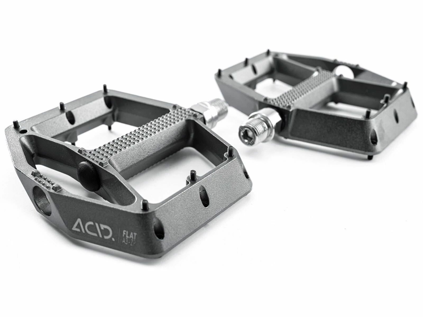 Hier im Bikepark kenne ich jeden Anlieger, jeden Sprung und jede Wurzel. Adrenalin pur! Auf meine Acid Flat Pedale kann ich mich dabei voll verlassen. Mit ihren einstellbaren Pins und der großen Standfläche fühle ich mich auch im gröbsten Wurzelteppich sicher mit dem Bike verbunden und kann mich doch sofort davon lösen, wenn der Trick mal nicht so klappt wie geplant.