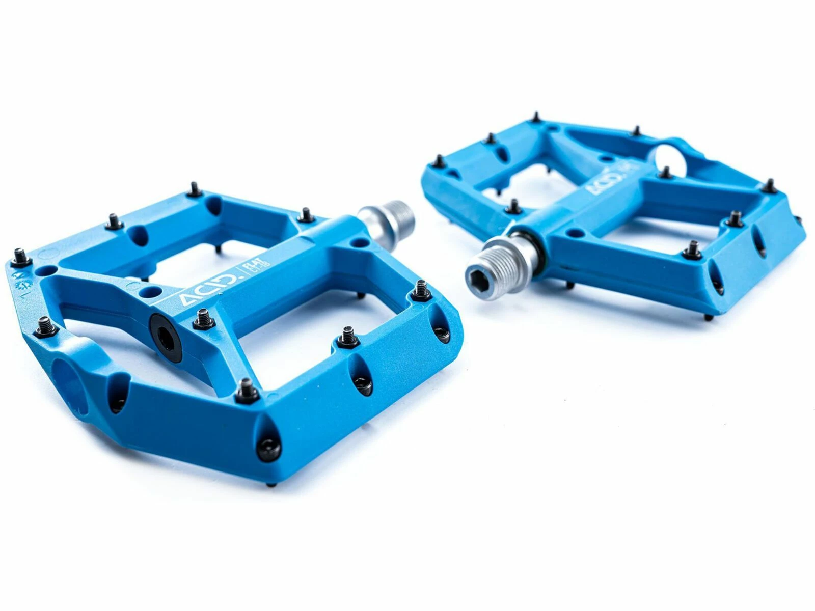 Hier im Bikepark kenne ich jeden Anlieger, jeden Sprung und jede Wurzel. Adrenalin pur! Auf meine Acid Flat C1-IB Pedale kann ich mich dabei voll verlassen. Mit ihren einstellbaren Pins und der großen Standfläche fühle ich mich auch im gröbsten Wurzelteppich sicher mit dem Bike verbunden und kann mich doch sofort davon lösen, wenn der Trick mal nicht so klappt wie geplant.