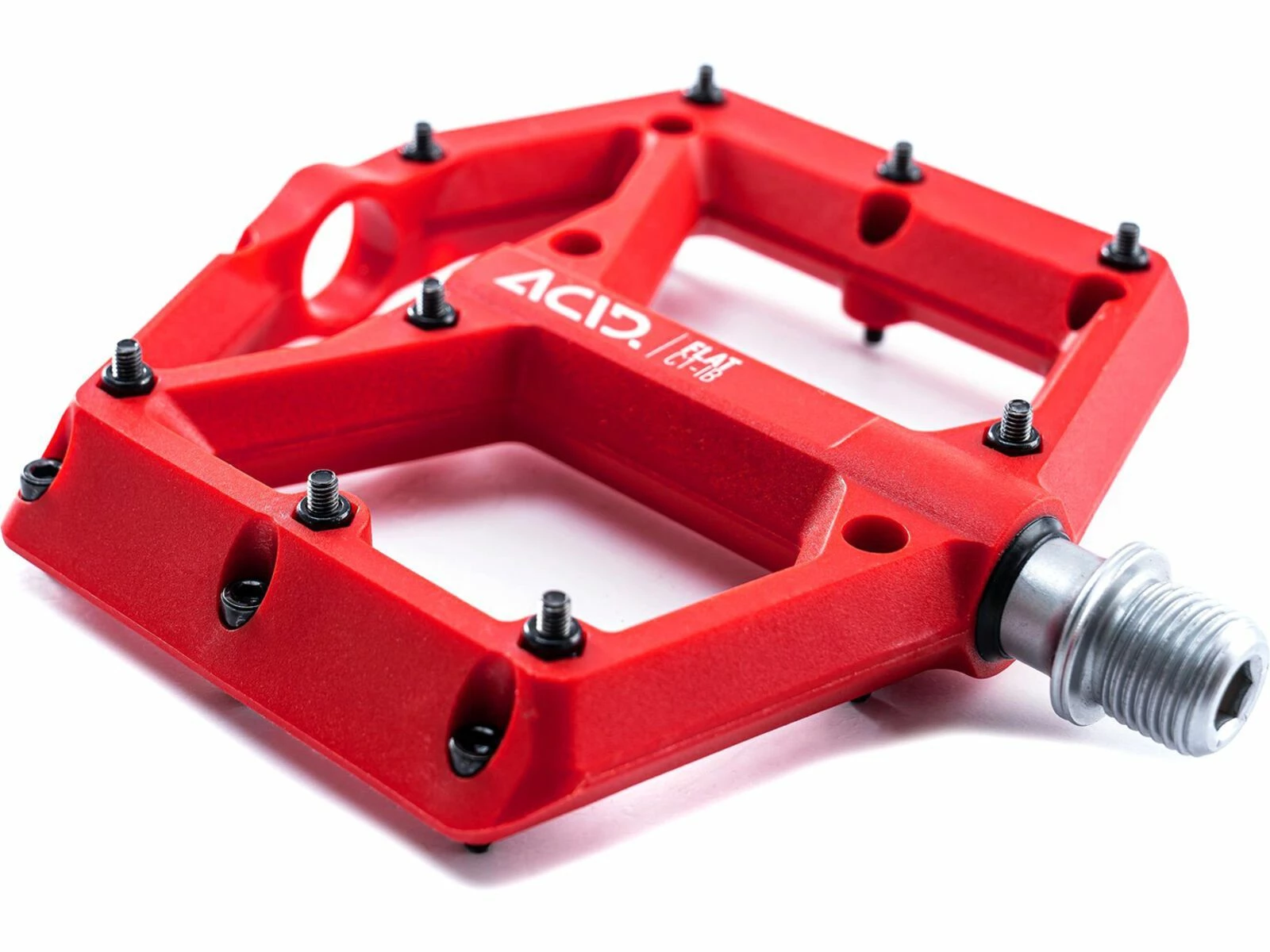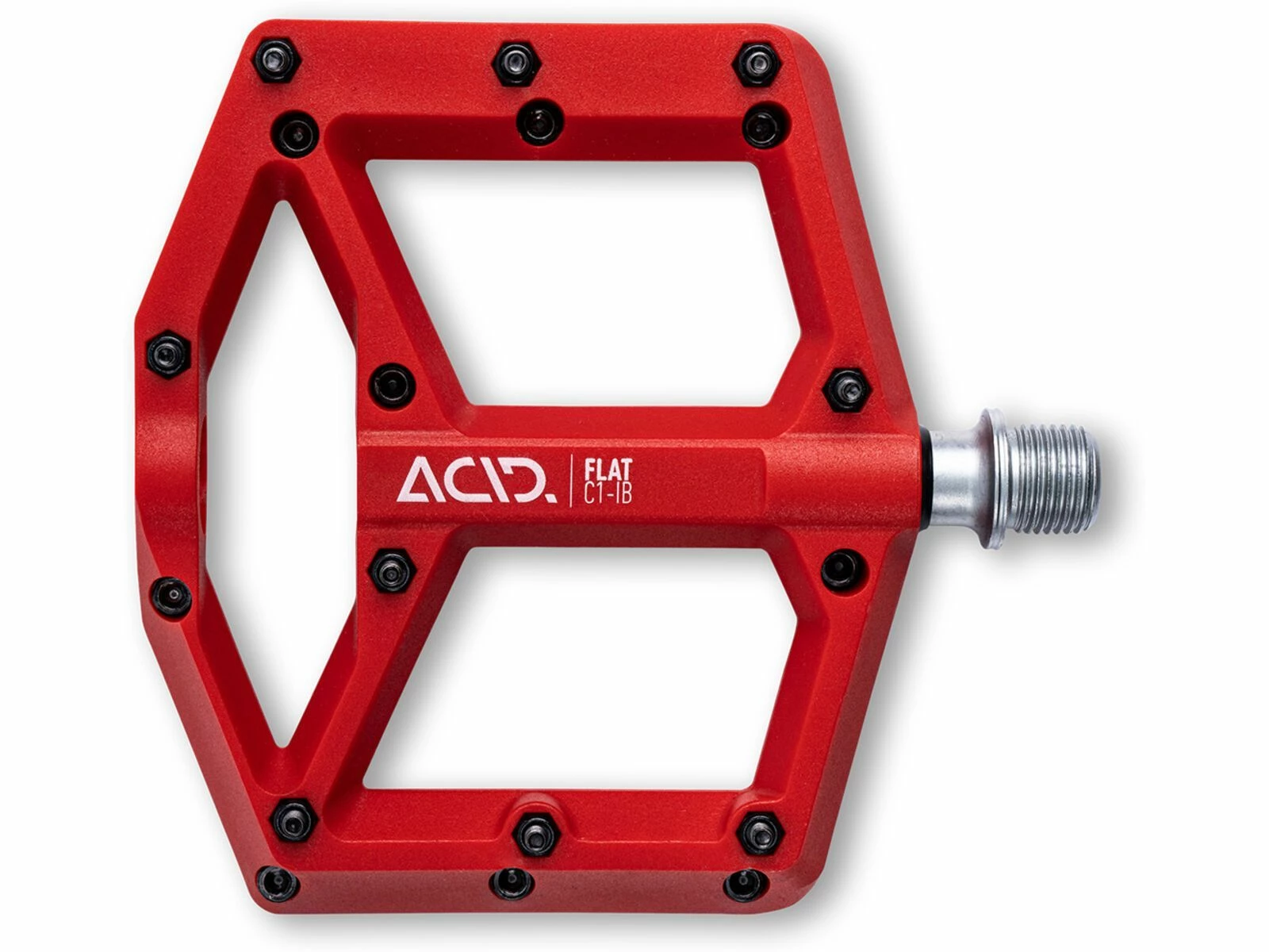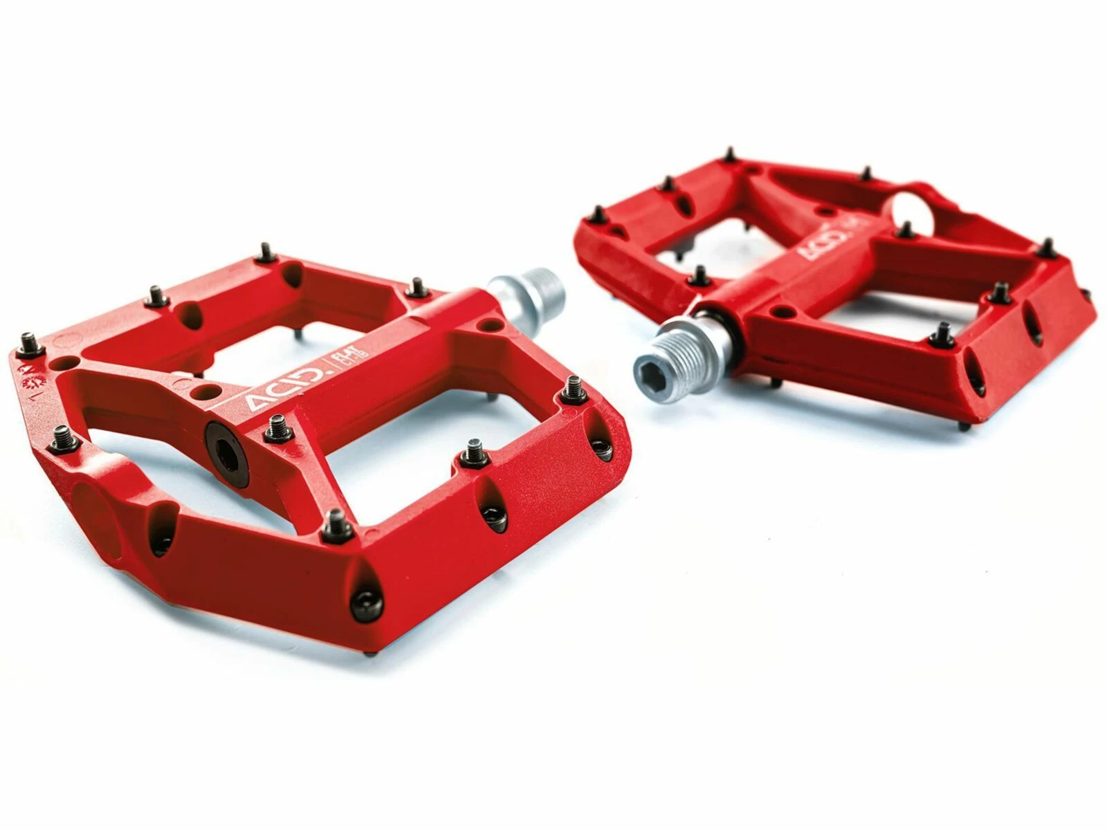 Hier im Bikepark kenne ich jeden Anlieger, jeden Sprung und jede Wurzel. Adrenalin pur! Auf meine Acid Flat C1-IB Pedale kann ich mich dabei voll verlassen. Mit ihren einstellbaren Pins und der großen Standfläche fühle ich mich auch im gröbsten Wurzelteppich sicher mit dem Bike verbunden und kann mich doch sofort davon lösen, wenn der Trick mal nicht so klappt wie geplant.