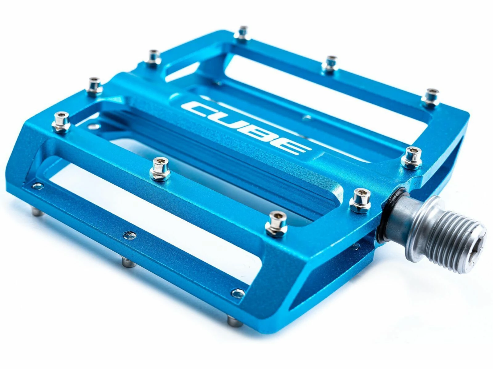 Die Cube Pedale All Mountain ist ein High-Performance-Flat-Pedal für progressive All-Mountain-Fahrer. Leichtgewichtig und mit niedrigem Profil dank CNC-Bearbeitung und konkavem Fußbett. Industrie- und Gleitlager sorgen auch bei holprigen Trails für Leichtlauf, die zehn austauschbaren Pins pro Seite garantieren den nötigen Halt.