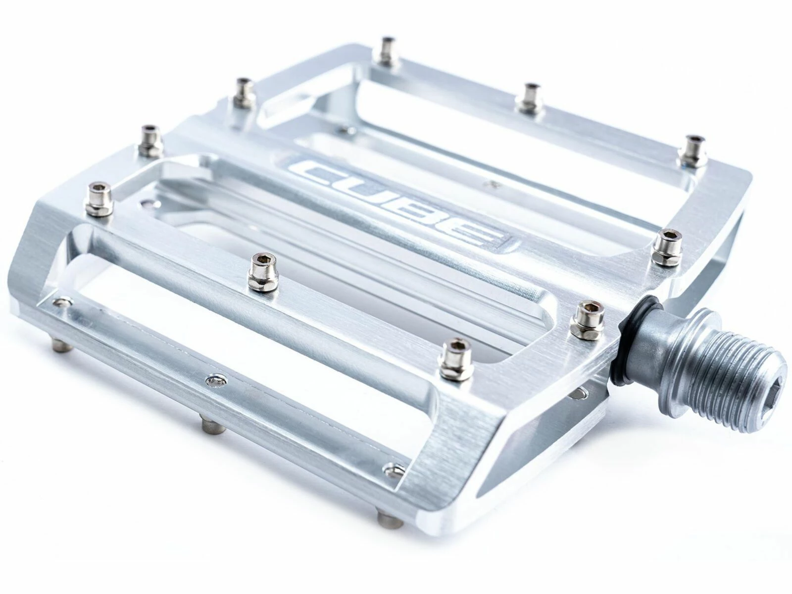 Die Cube Pedale All Mountain ist ein High-Performance-Flat-Pedal für progressive All-Mountain-Fahrer. Leichtgewichtig und mit niedrigem Profil dank CNC-Bearbeitung und konkavem Fußbett. Industrie- und Gleitlager sorgen auch bei holprigen Trails für Leichtlauf, die zehn austauschbaren Pins pro Seite garantieren den nötigen Halt.