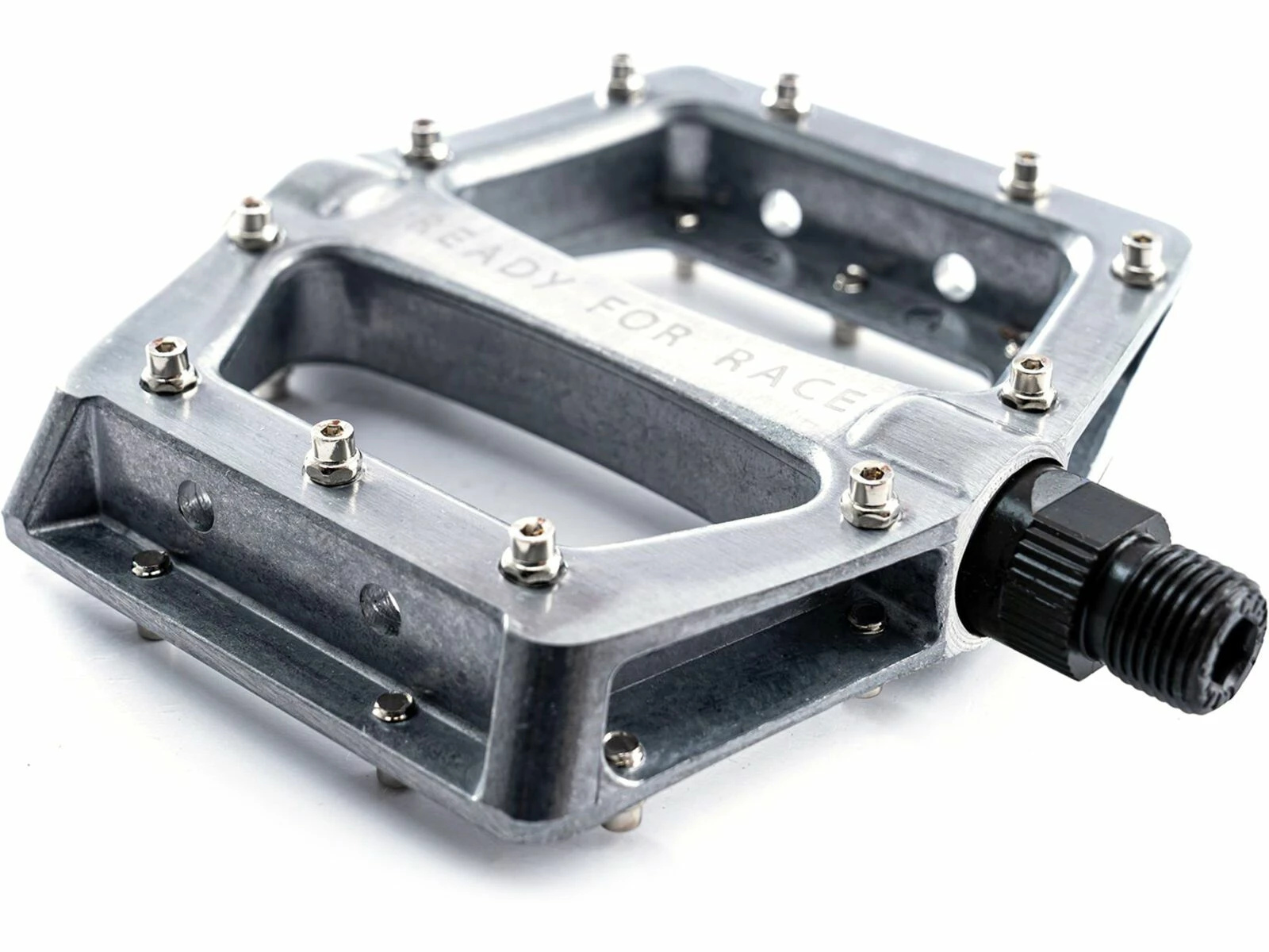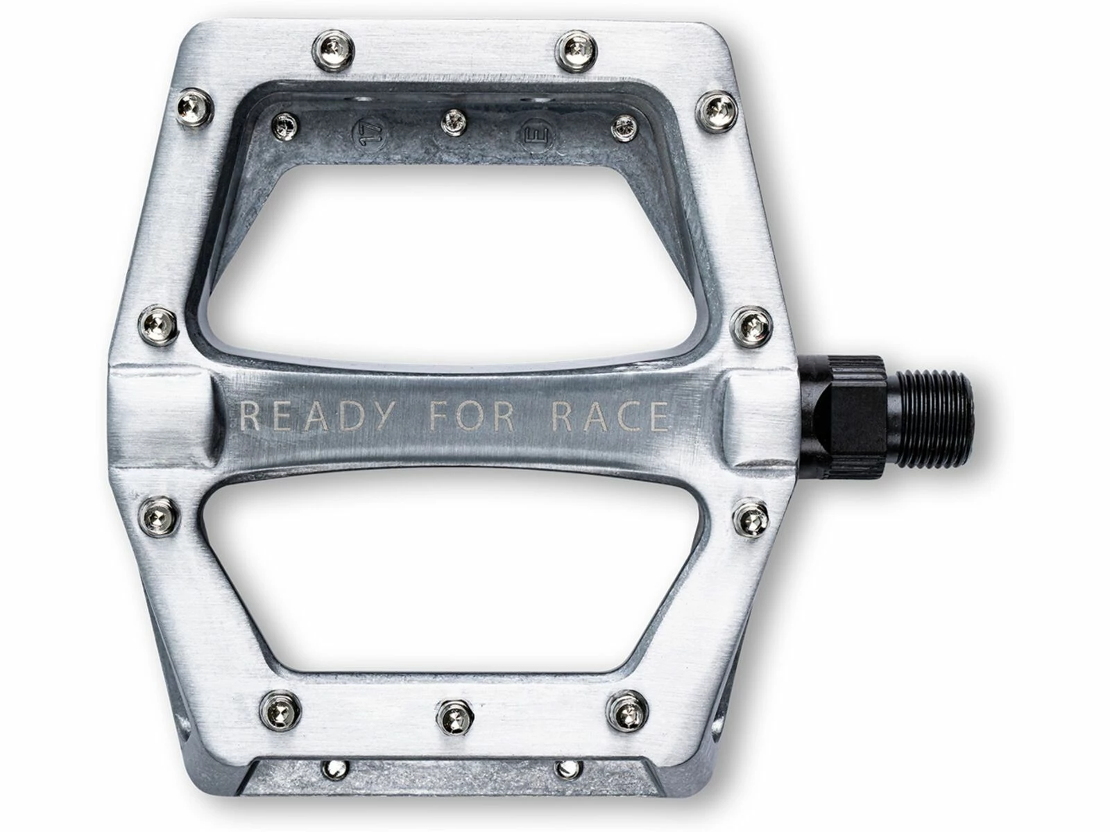 Die leichten Cube RFR Pedale Flat CMPT Pedale sind aus Aluminium hergestellt und werden mit einer CrMo-Achse verbaut. Die Anti-Rutsch-Pins sind austauschbar und bieten besten Halt am Fahrrad.