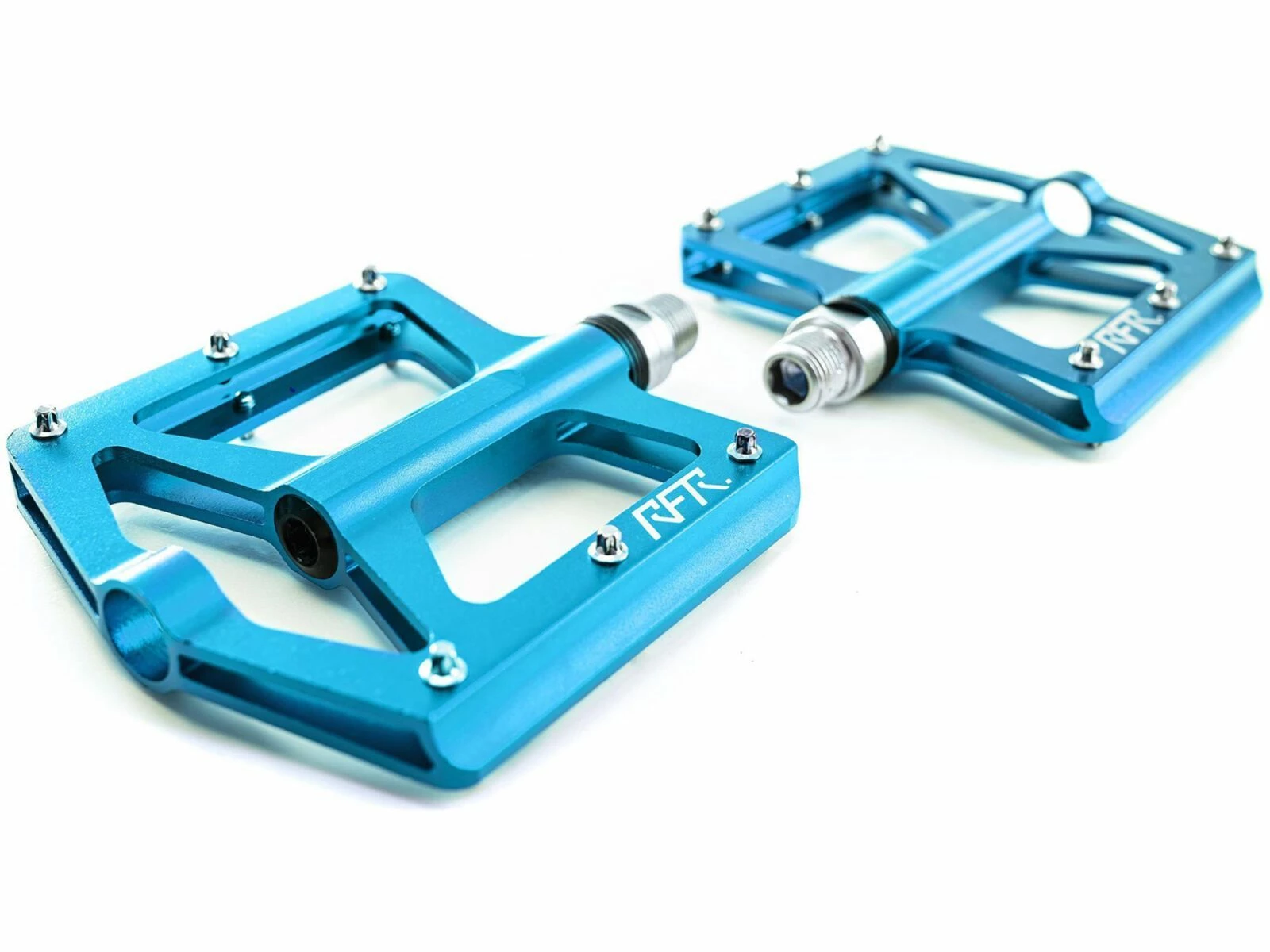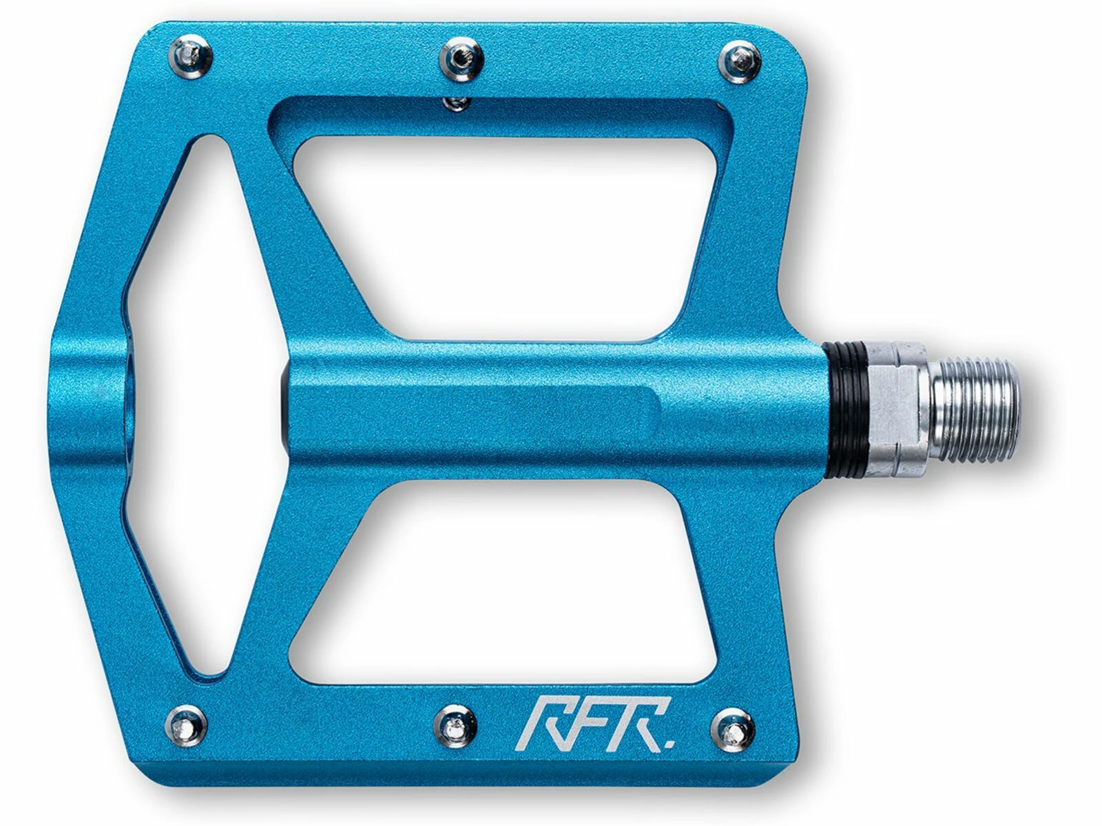Das Cube RFR Flat Race 2.0 ist ein leichtes Flat-Pedal mit niedrigem Profil, Industrielagern und LSL-Bushing. Die Pins sind austauschbar und schenken besten Grip.