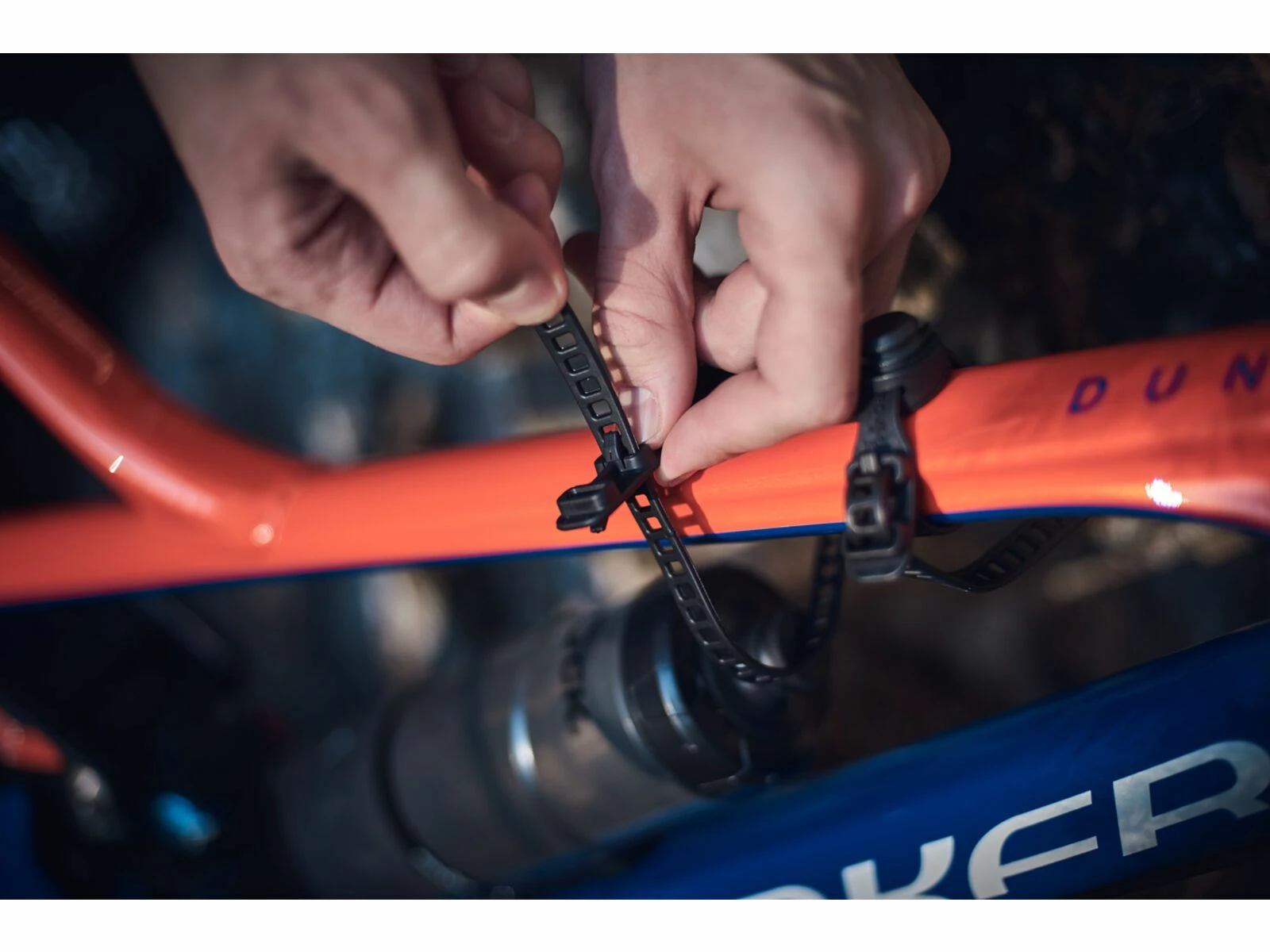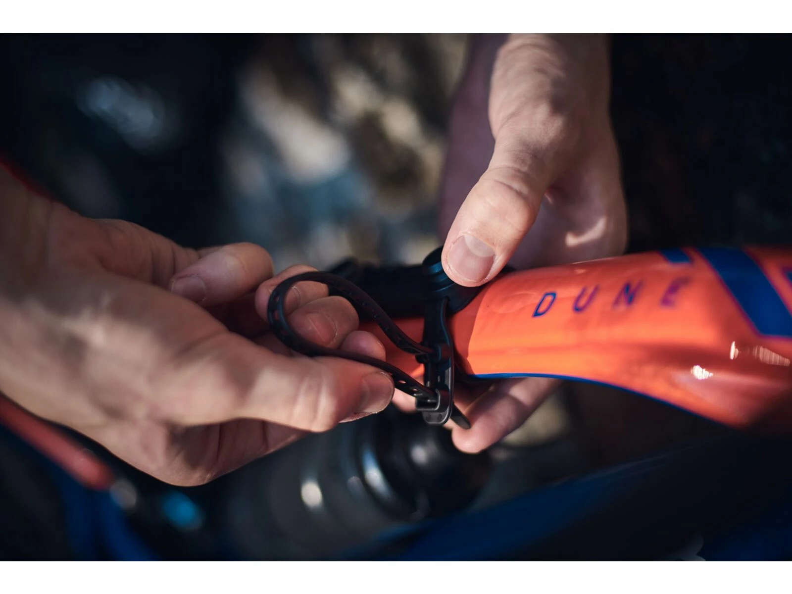 Twist Uni Base – der universelle magnet-mechanischer Flaschenhalter von Fidlock. Sind die Gewindebuchsen am Fahrradrahmen schon belegt oder gar keine vorhanden, können die Twist Modules mit dem universellen Flaschenhalter, der Twist Uni Base, dank flexibler und wiederverschließbarerer Kabelbinder sicher und rutschfest am Fahrrad befestigt werden. Ob Oberrohr, Unterrohr oder Sattelrohr – die Twist Uni Base passt an jeden Rahmen.Features
