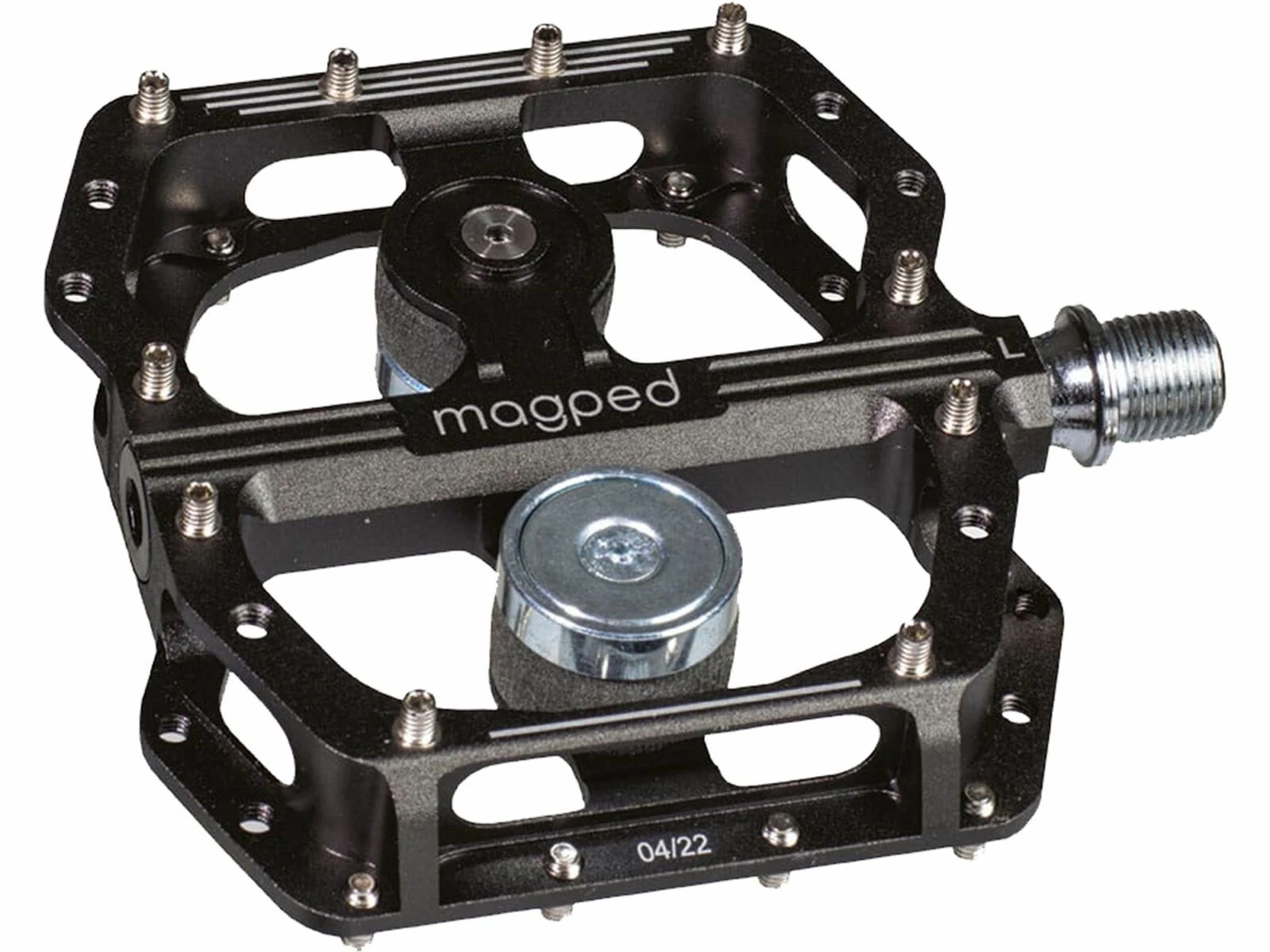 - Technik: Das magped Pedal ist mit 3 hochwertigen, abgedichteten Industriekugellagern ausgestattet. Die Pins des Pedals können bei Bedarf gewechselt werden. Die Höhe des Neodym Hochleistungsmagneten ist über eine spezielle integrierte Polymerfederung verstellbar.