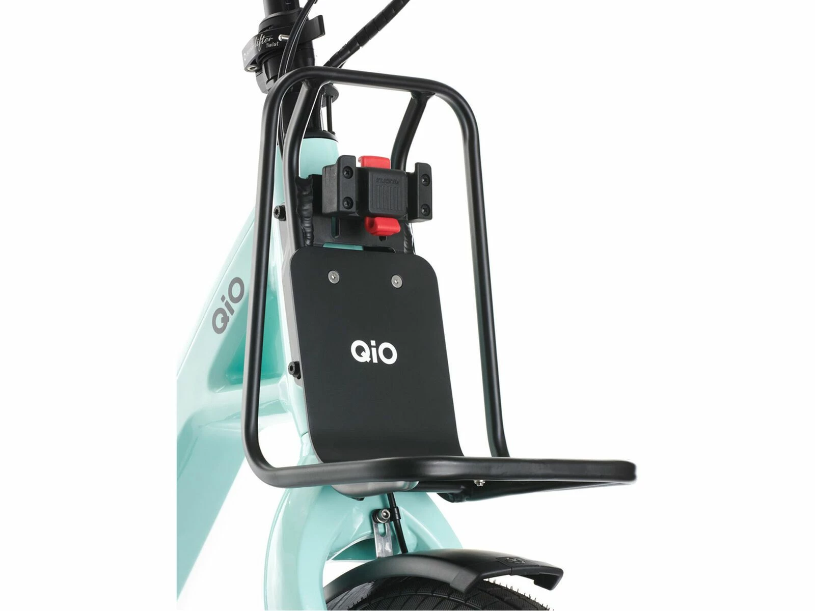 Der QiO Front-Transportgepäckträger Ben nimmt es mit bis zu 12 kg Traglast auf und wird mit einer 4-Punkt-Aufnahme am Steuerrohr deines QiO Bikes befestigt. Er verfügt über einen höhenverstellbaren Klickfix-Adapter mit Schloss, in den du passende Taschen und Körbe schnell und einfach einklicken kannst. Die eingesetzte Aluminium-Platte erhöht dabei die Auflagefläche.