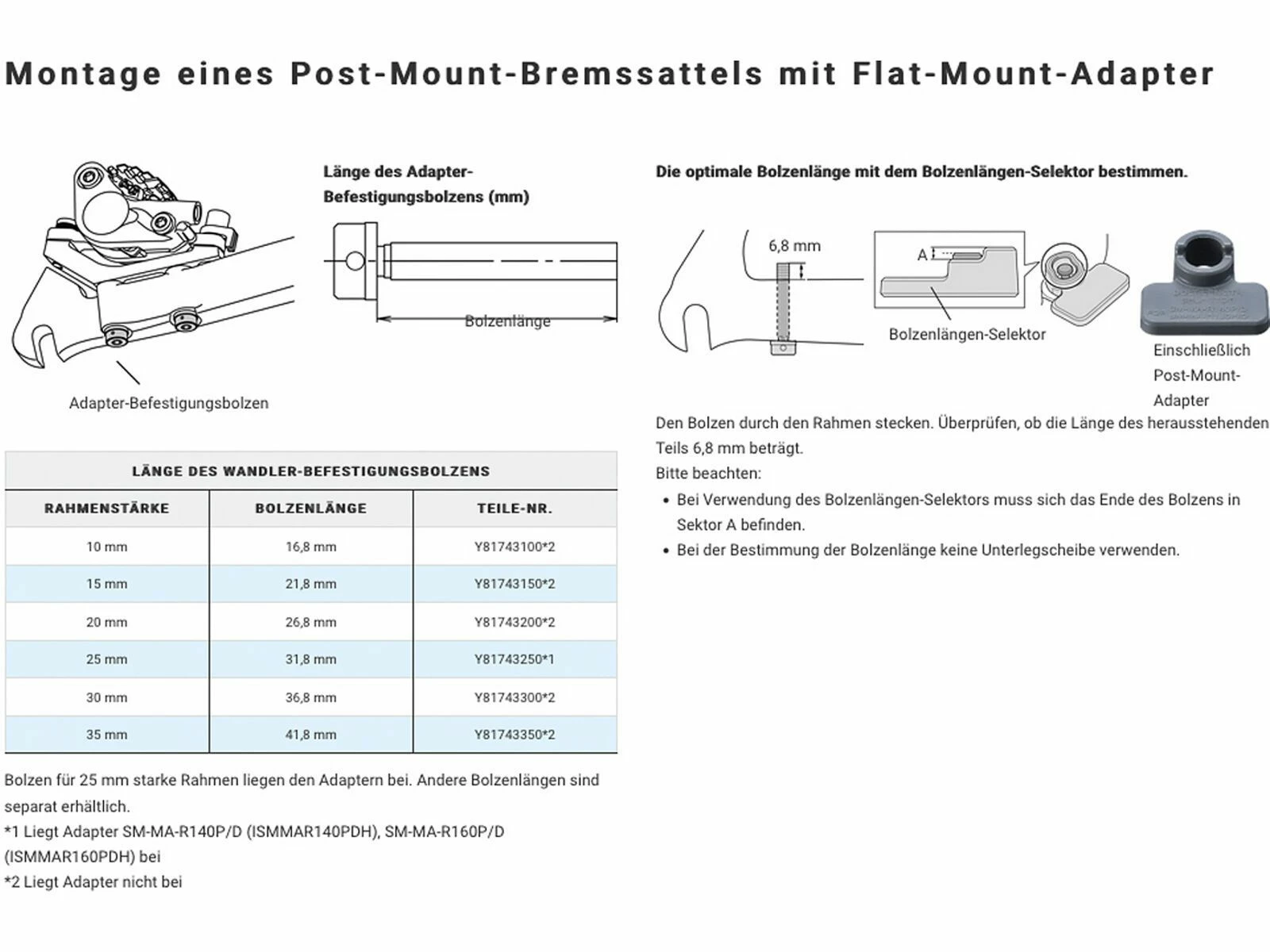 Mit dem Shimano Converter Flat Mount (Road) kannst du einen Post-Mount-Bremssattel an eine Gabel mit Flat-Mount-Aufnahme mit 160 mm Bremsscheibendurchmesser adaptieren.