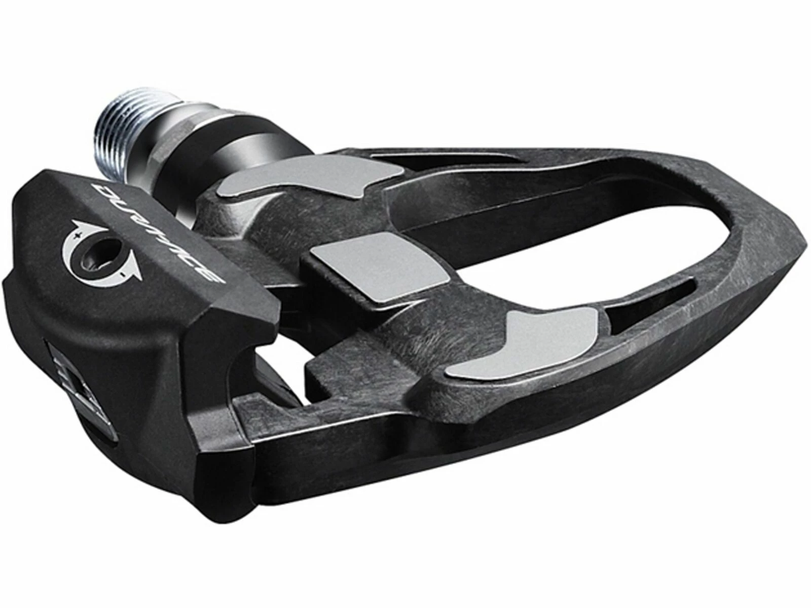 Die Shimano PD-R9100 SPD-SL Pedale der Dura-Ace R9100 Serie bieten dir ein optimiertes Verhältnis von Gewicht und Steifigkeit durch einen spritzgussgefertigten Pedalkörper aus Carbon-Verbundmaterial. Dabei sorgt die extra breite Aufstandsfläche für eine hohe Stabilität und Kraftübertragung und der größere Lagerabstand für eine bessere Lastverteilung. In dieser Ausführung mit 4 mm längerer Achse.Features
