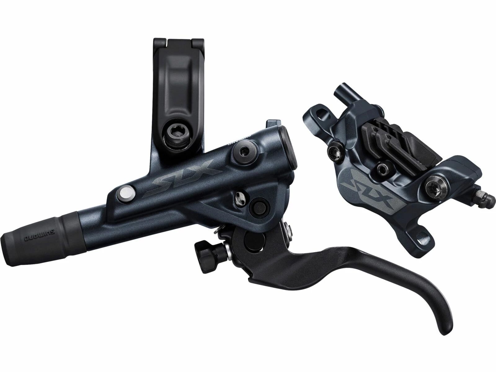 Shimano SLX M7120 4-Kolben-Scheibenbremse für das Vorderrad. Der SLX BL-M7100 Bremshebel ist auf reduziertes Gewicht und Cross-Country-spezifische Bremsleistung ausgelegt und vermittelt dank intuitiver Modulation viel Sicherheit. Der SLX M7120 Bremssattel bietet gleichmäßige, zuverlässige Bremsleistung in allen Bedingungen Der Bremssattel mit 4 Kolben sorgt für mehr Sicherheit und Kontrolle im Downhill. Einsatzbereich