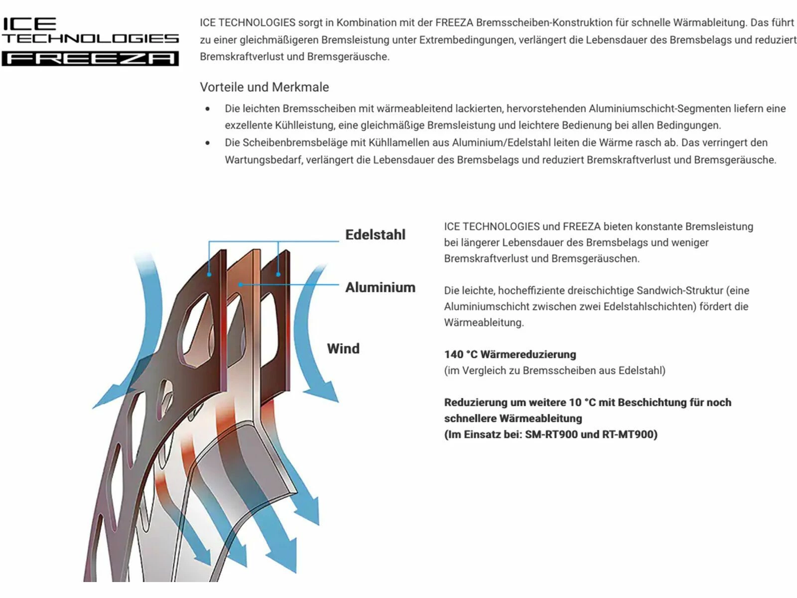 - Ice Technologies Freeza: Leichte Bremsscheiben mit wärmeableitend lackierten, hervorstehenden Aluminiumrippen liefern eine exzellente Kühlleistung, eine gleichmäßige Bremsleistung und leichtere Bedienung bei allen Bedingungen. Mit größerer Oberfläche für die Wärmeverteilung. Vorteile: 50° C Hitzereduktion / 20 % höhere Bremskraft / 20 % längere Belagslebensdauer
